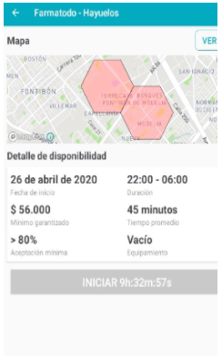 La aplicación te asignará un tiempo aproximado de llegada al primer punto, que será de máximo