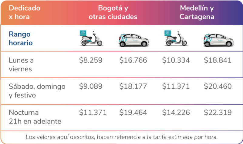 *Este valor varía según el tipo de vehículo, día, cliente y ciudad de la operación.