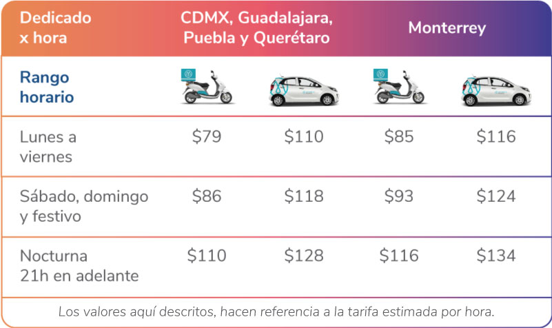 *Este valor varía según el tipo de vehículo, día, cliente y ciudad de la operación.