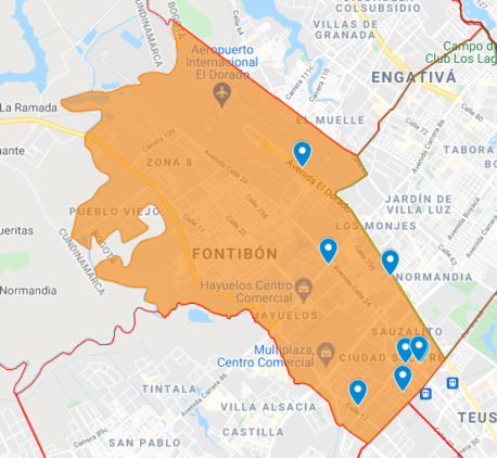 Cobertura: Desde Av. El Dorado con Kr 68 y la Cll 90 con Transv. 94 L.