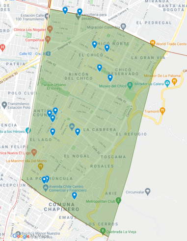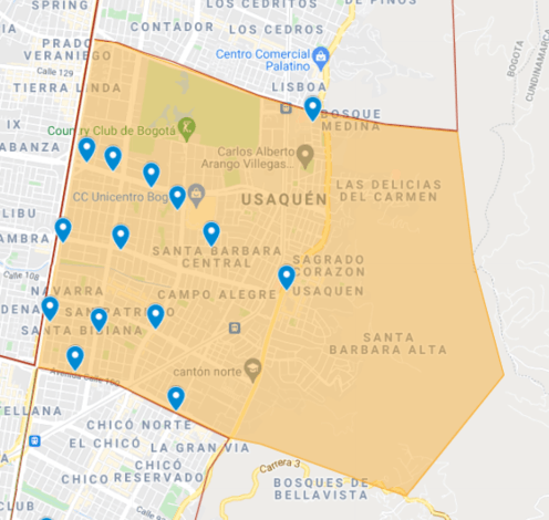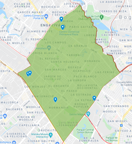Cobertura: Desde la Aut. Norte con Cll 100 y la Kr 68 con Cll 63