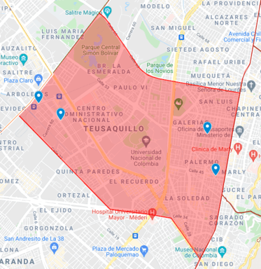 Cobertura: Desde la Cll 40 con Av Caracas y la Dg 6a con Transv. 9 Este